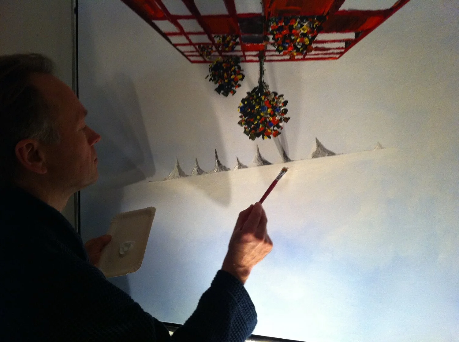 He often works with acrylic painting in the 100 x 100 centimetres format, but he has also created smaller paintings with other techniques. You can see some of his paintings on this website, but you will find more in his gallery at home. Guests are welcome by appointment. Some of the paintings at this website are in private ownership, but many are still for sale. The prices are reasonable.